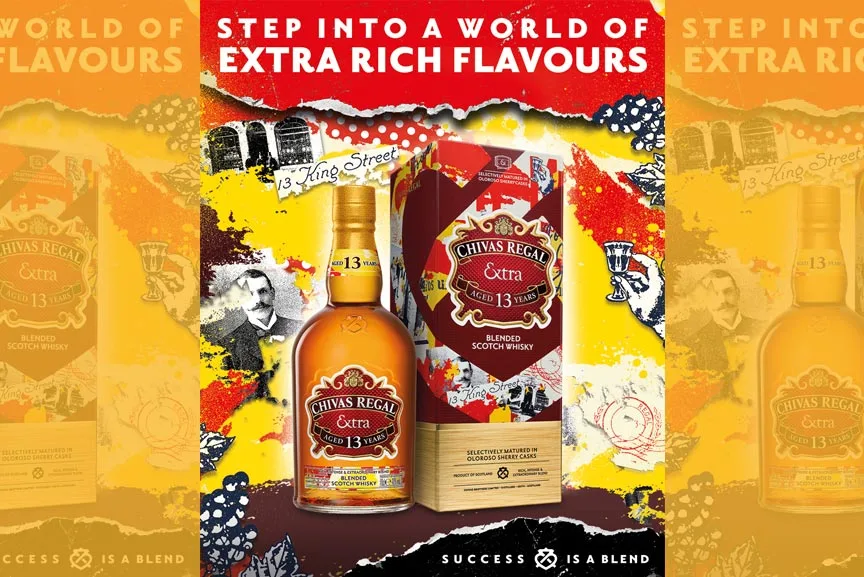Με το Chivas Extra 13 Ετών, το Chivas ξαφνιάζει ευχάριστα, συνδυάζοντας αριστοτεχνικά το εξαιρετικό Scotch whisky με ξεχωριστές γεύσεις και αρώματα από τα συγκεκριμένα βαρέλια που έχουν προέλευση από την Ισπανία. Αυτός ο συνδυασμός εκφράζεται και δημιουργικά στο σχεδιασμό της φιάλης και της συσκευασίας του, που επιμελήθηκε ο street artist Greg Gossel. Εικόνες από την ιστορία των αδερφών Chivas και του delicatessen τους στην King Street του Aberdeen συνδυάζονται με σύγχρονα στοιχεία σε κόκκινες και κίτρινες αποχρώσεις, εμπνευσμένα από την Ισπανία, την πατρίδα του Oloroso Sherry.